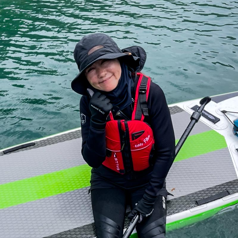 | 資格 | ・(一社)日本セーフティパドリング協会(JSPA)公認 ・SUPベーシックインストラクター ・セーフティ&レスキュー講座修了 •消防庁/上級救命講習修了 •カナダ雪崩協会/アバランチセーフティ修了 •全日本スキー連盟(SAJ)/スキー検定1級 |